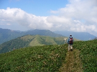 スーパー林道から登ってこられた香川の方に出会いました。 | 山頂を後にして、トラバース道へ下山します。 |