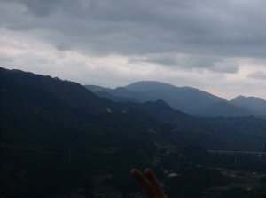 | 急な石段を息を切らしながら頑張って登ると、竜ガ岳のピークに到着します。高さ200Mの花崗岩で出来た岩で、眼下に集落、駐車場と周囲の山々が望めます。 | |