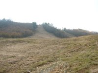 | 牛の寝床を巻いて山頂へ向かわないで、ここを直登します。 | 山頂が見えません | 傾斜角45度・・・ |