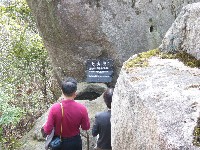 | 弥山山頂を振り返ります | 少し休憩して、多宝塔コースを下山します | 岩に目印があります |