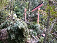 | 御山神社の鳥居は台風で倒壊です | 大聖院分岐の鞍部まで下ります | 仁王門も以前の台風で倒壊しました |