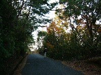 | ここは右です、左は包が浦への道です | 歩道の両側はは紅葉です | 画像クリックで拡大します まだ少し早いかな・・ |