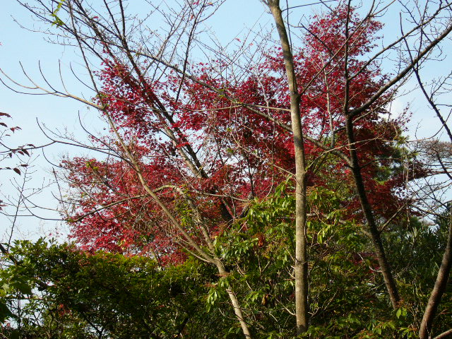 | 少々荒れている山道です | ピークを過ぎて少し下ります | 少し開けたところに紅葉が・・ |