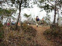 | このあたりから急登 | ロープが助かります | 岩の上を登ります |