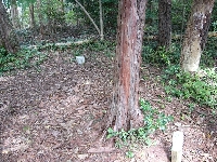 沢を渡りしばらく登ります | 細い道を登ると千年杉が見えてきます |