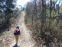| 山道は広く整備途中です。ここは急登です。山頂まで200m | ライオンズクラブが植樹しています。 | 山頂まで100mの案内板です。 | |