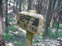 | 登山口まで2.5Km | 自然林の中を下ります。 | ここから1Kmが尼子道です。 |