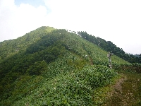 | 山頂に向かいます。 | 尾根に出て左に三角点があります。 | この先の頂です。 |