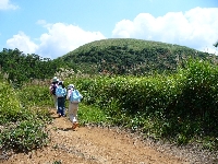 | ここでもお子様のペースに合いません。 | 少し下ると南登山口の駐車場が遠望できます。 | 画像クリックで拡大します キスゲ(?) |