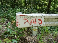 林道を20分ほど歩くと左手に下山口のテープがあります。 |