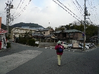 | JR可部線の下祇園駅から出発です。 | 駅南の踏切を渡り西北方向に突き当たるまで歩きます。 | 右に折れ気味に直進すると・・ |