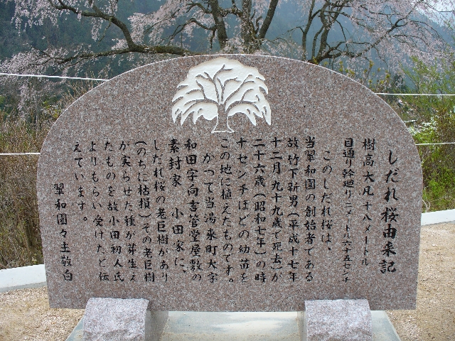 | 大きさがわかるでしょうか? | しだれ桜の由来がありました。 | |