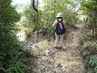 | 美鈴が丘中学校コースの分岐まで戻りました。 | 分岐を左に下ります。 | いきなり急坂・・・ |