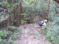鉄塔から中学校まではほんの少し、どこかに踏み跡はないか?と探しましたが見つかりません。お菓子の袋が落ちていましたので、かつてはこの山道も歩かれていたのでしょうが、いまは山道は消えています。 もう一度分岐まで引き返し美鈴が丘南1丁目に下山することにしました。 |