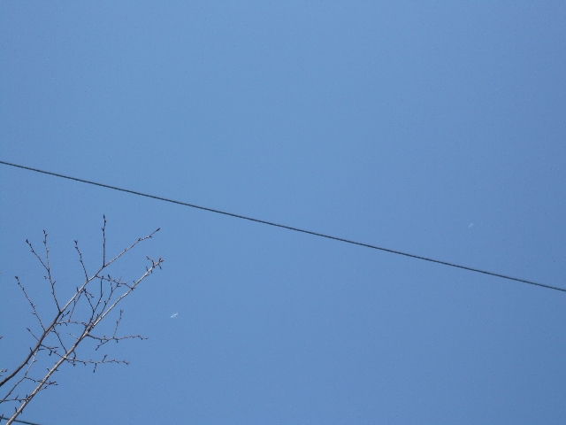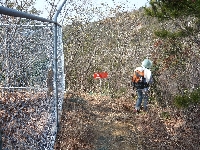 | 山道に入ります。 | すぐに鉄塔があります。 | 画像クリックで拡大します 快晴の空に旅客機が見えるでしょうか? |