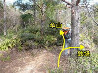 | その前に鉄塔を確認に行きました。 | 戻って傘山方面に向います。 | 明るい尾根道は快適に歩けます。 |