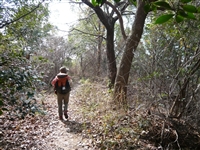 | 尾根道を北に向かい登ります。 | 岩のピークを過ぎると・・ | 快適な平坦な道です。 |