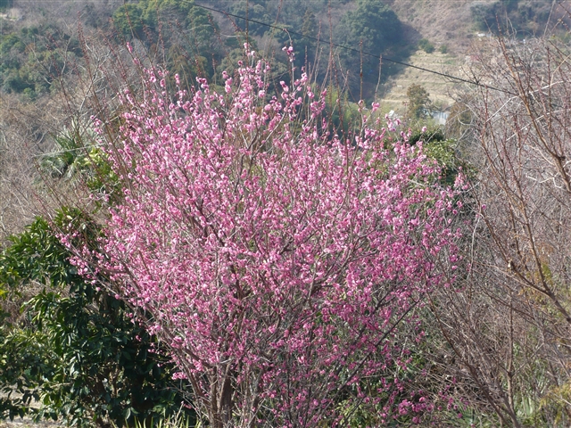 | すぐに前方が開けて、梅林です。 | さらに進むと、 | 画像クリックで拡大します ツバキ |