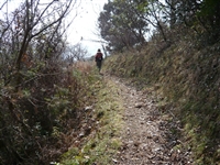 | ぐるっと巻いたところで折り返し気味に尾根道に取り付きます。 | 案内板があります。 | だらだら登りの道です。 |