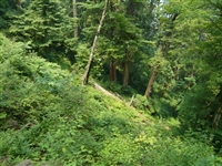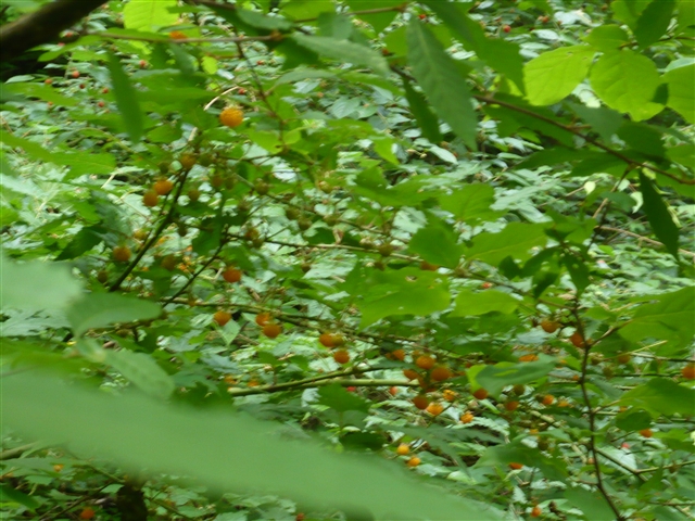 山道から下を見ると細い道が続いています。倒木まで下ると・・ |