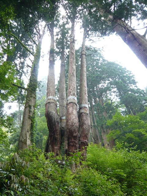樹齢190年の四本杉にお別れを告げてピストンで戻ります。 |