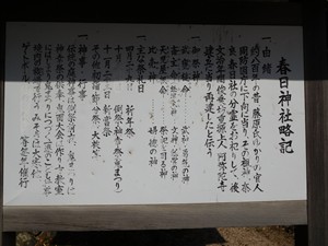 文治2年(1186)、周防国司としてこの地に下向された藤原氏がその祖神である奈良の春日大社のご分霊をお祀りされたと伝えられている。昭和61年(1986)にご鎮座800年祭を斎行。ご神宝は貞享3年毛利氏奉納の面などがある。 |