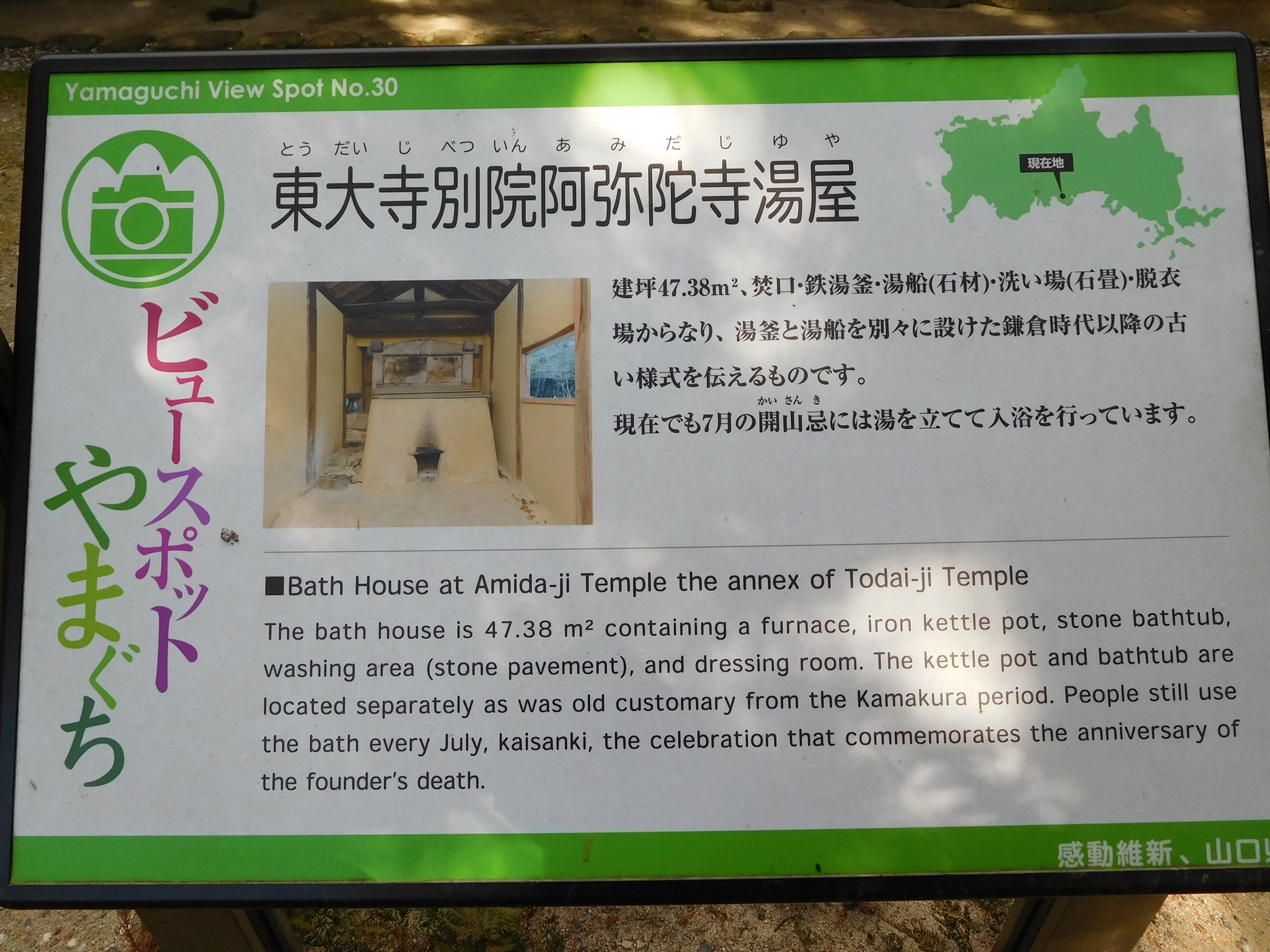 重源上人が東大寺用材の伐りだしに従事する人のための病気治療や疲労回復に設けたものと伝えられています。 |